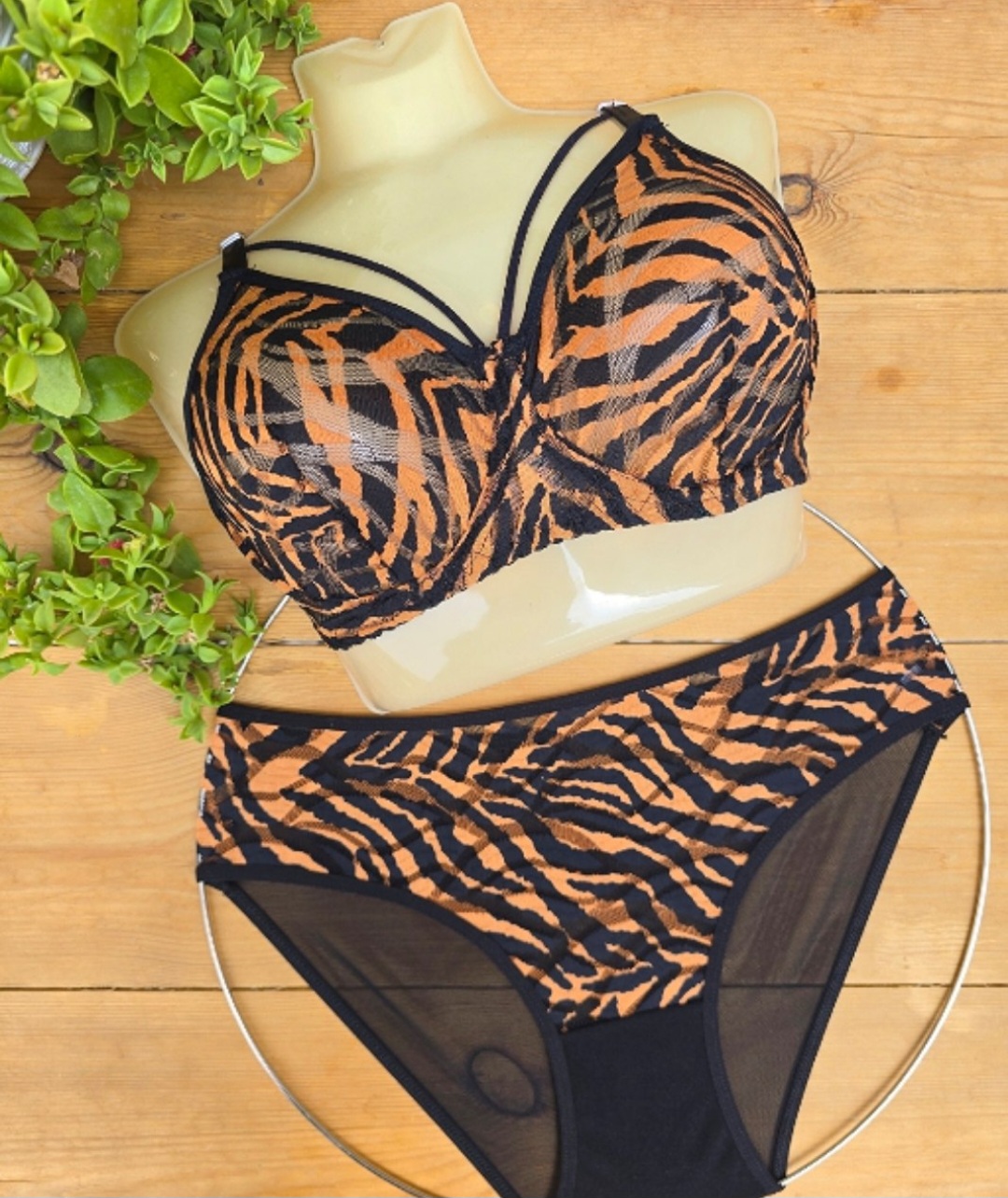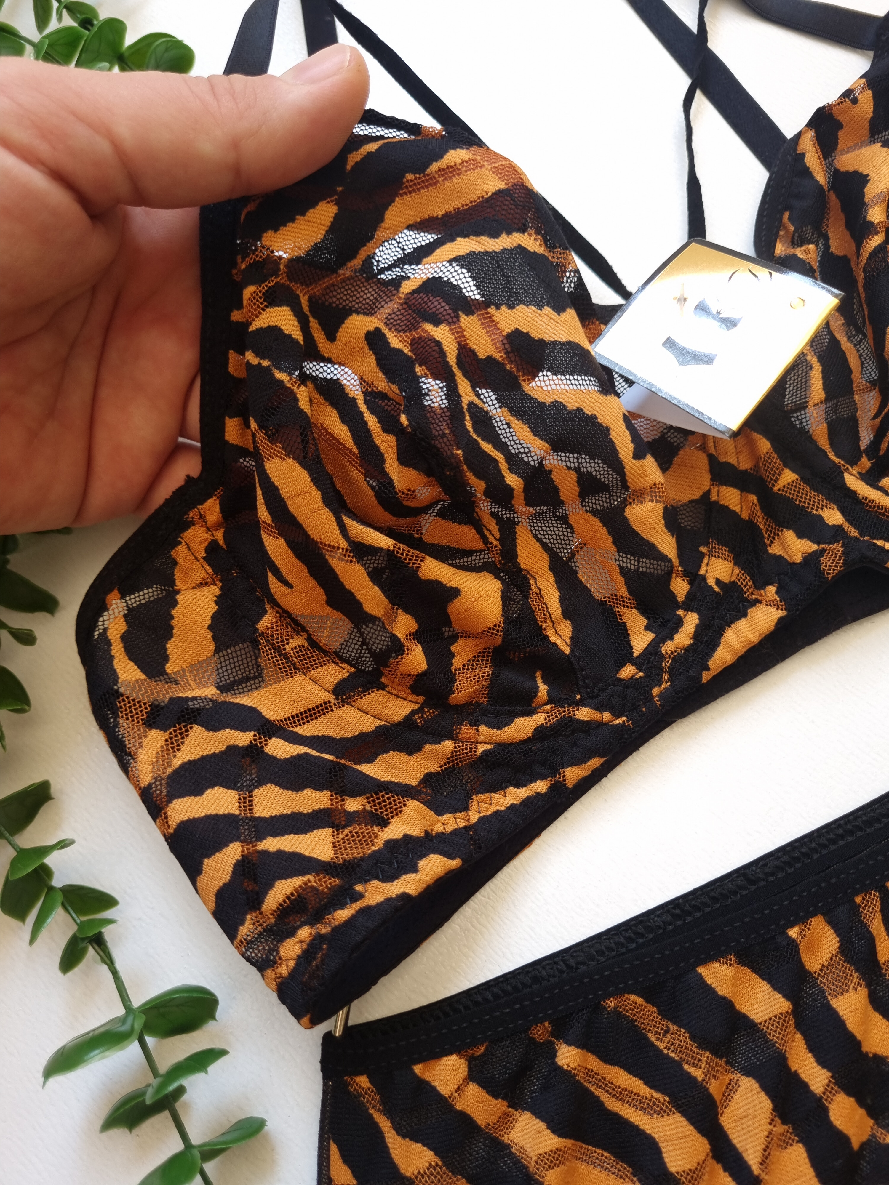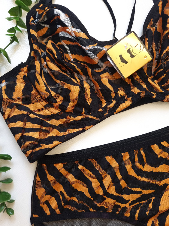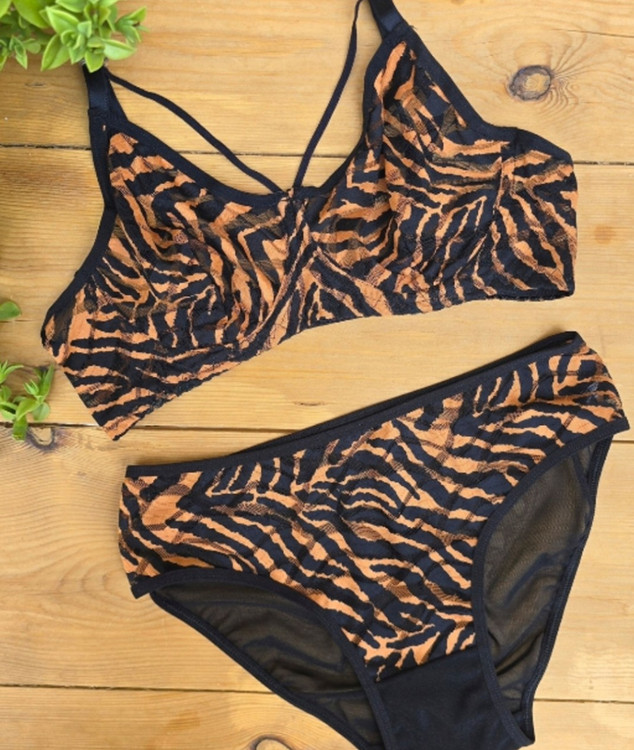 ست شورت و سوتین زنانه توری هارنی دار طرح ببری