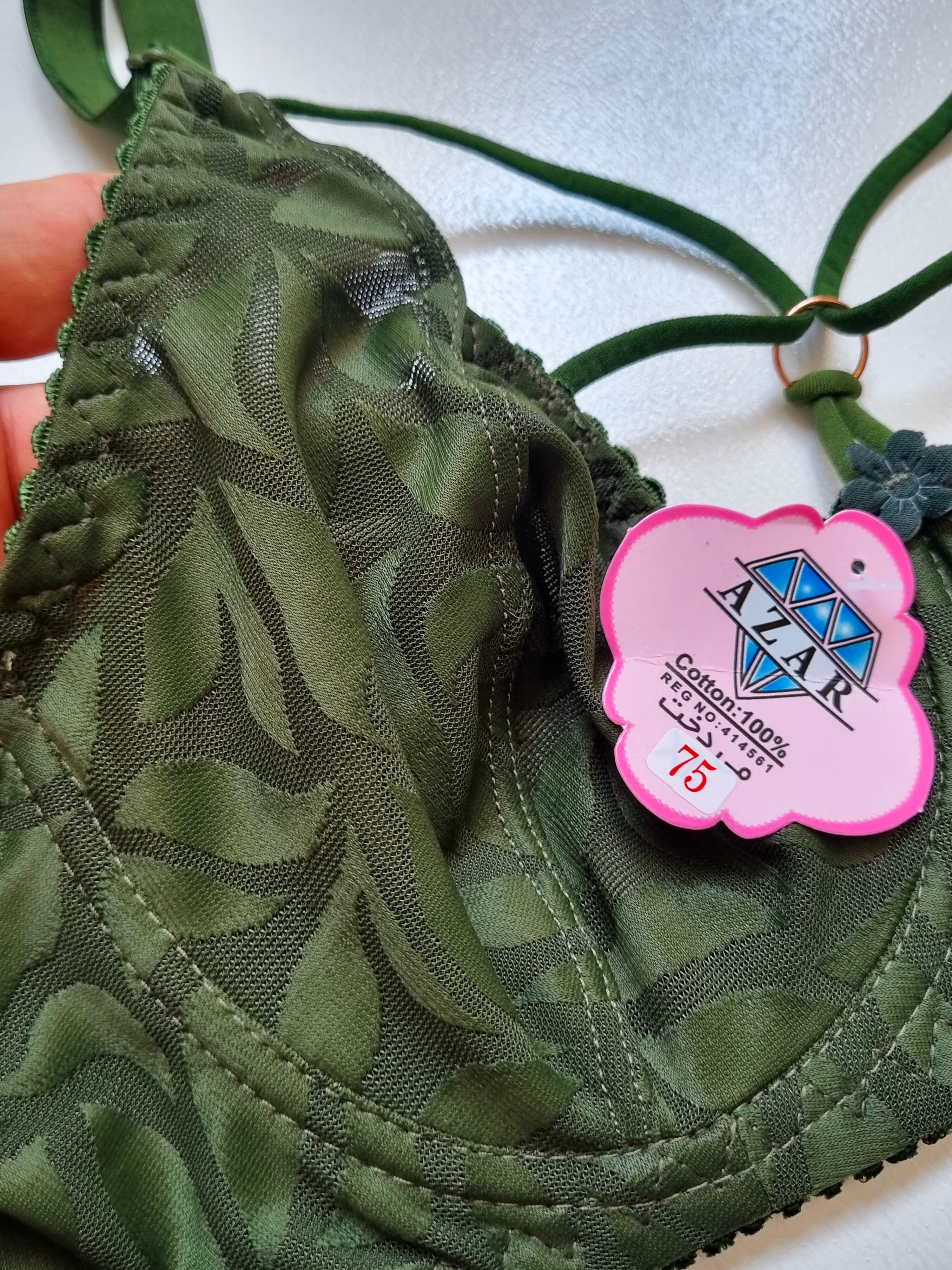 ست شورت و سوتین زنانه دانتل طرح گلبرگ سبز