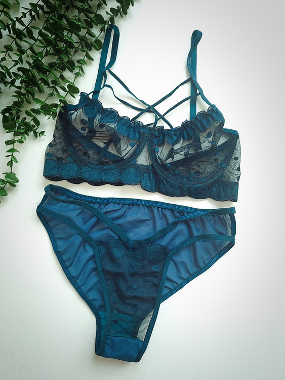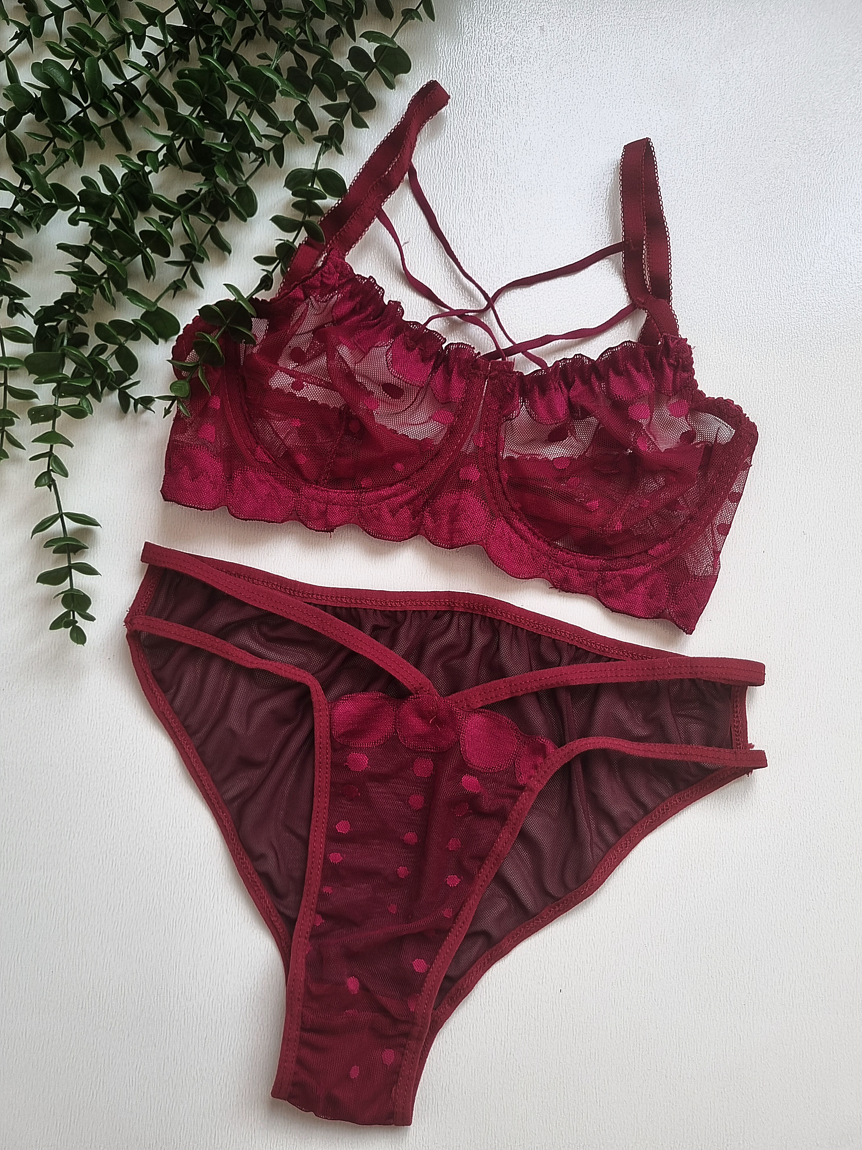 ست شورت و سوتین زنانه توری توپی هارنس ضربدری