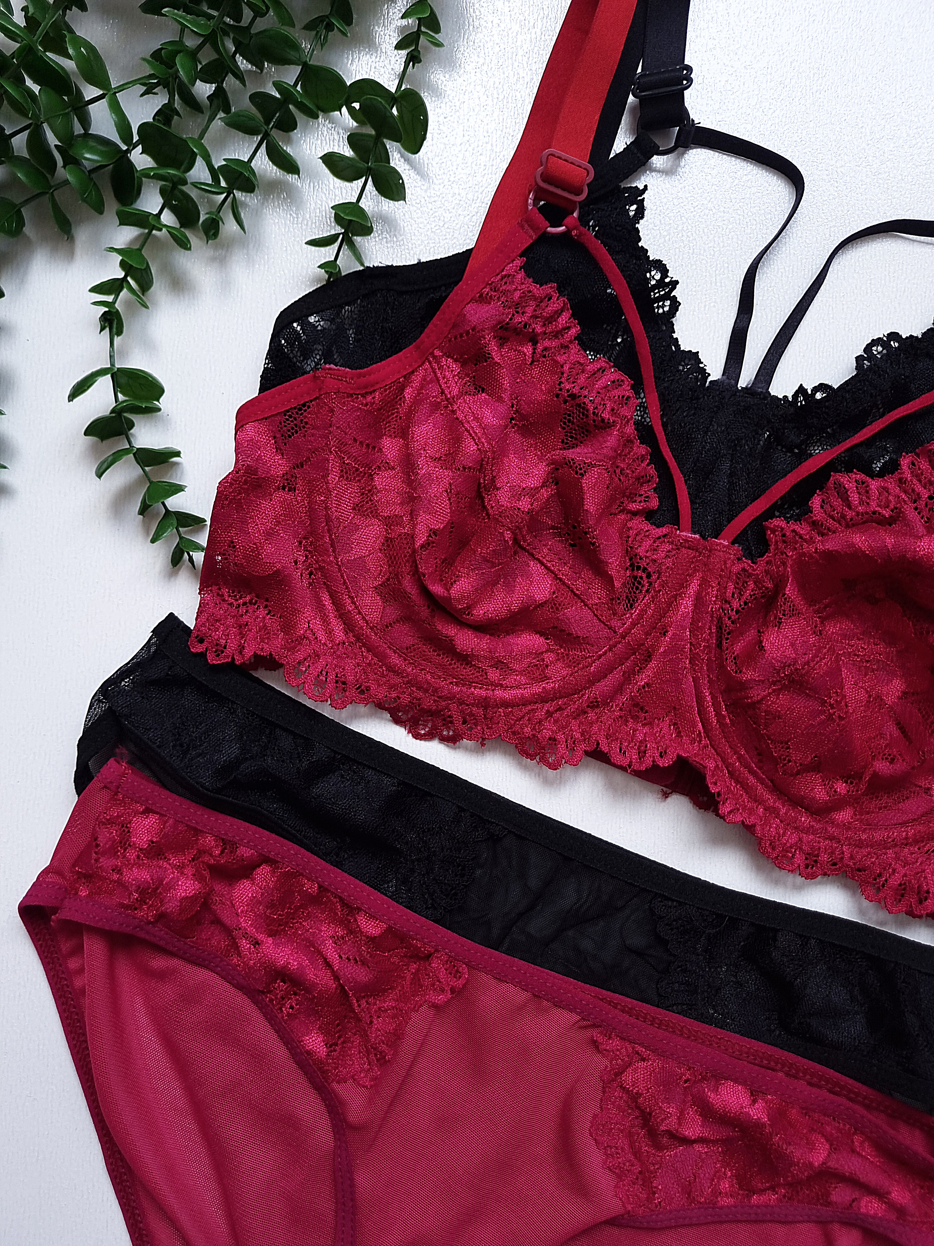 ست شورت و سوتین دانتل داخل نخی هارنس دار