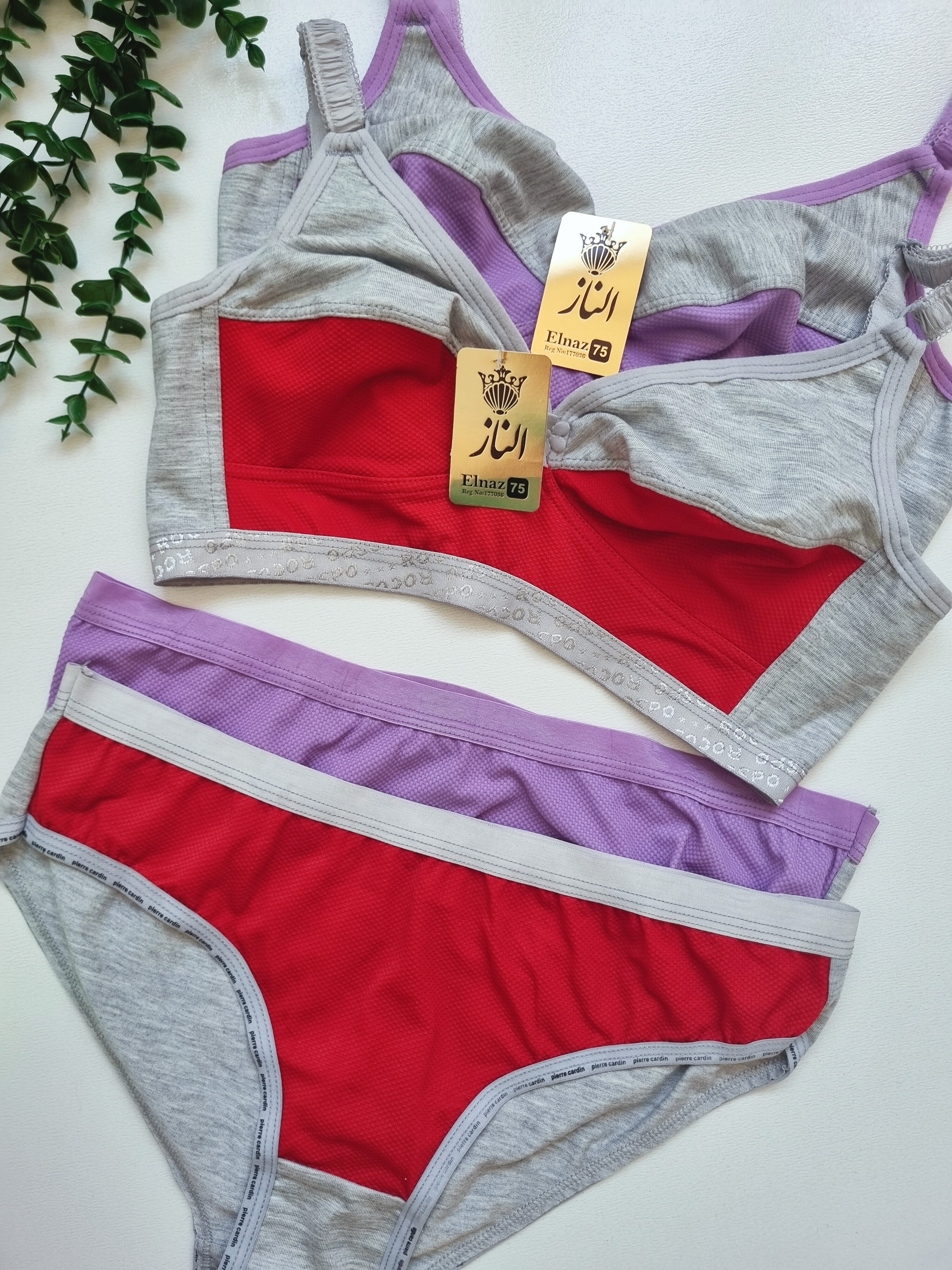 ست شورت و سوتین بدون فنر ملانژ نخی برند الناز