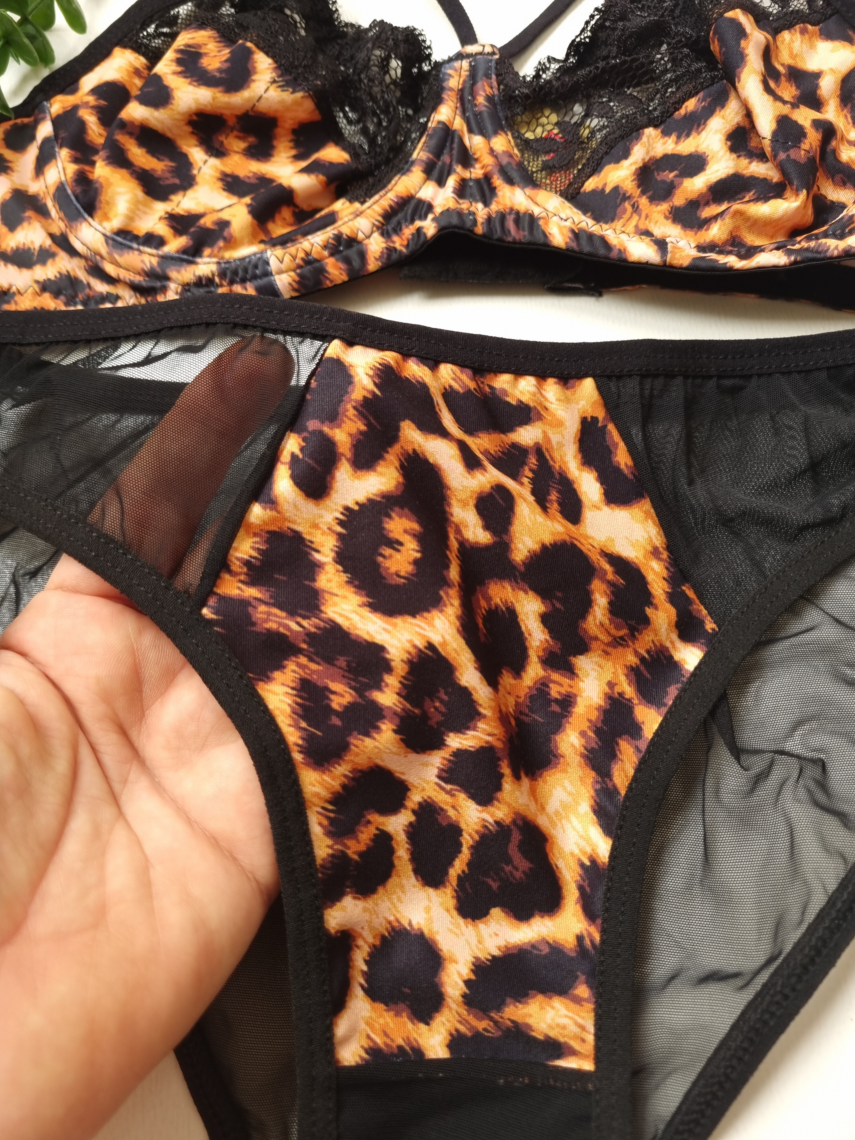 ست شورت و سوتین پلنگی پارچه میکرو خارجی داخل نخ