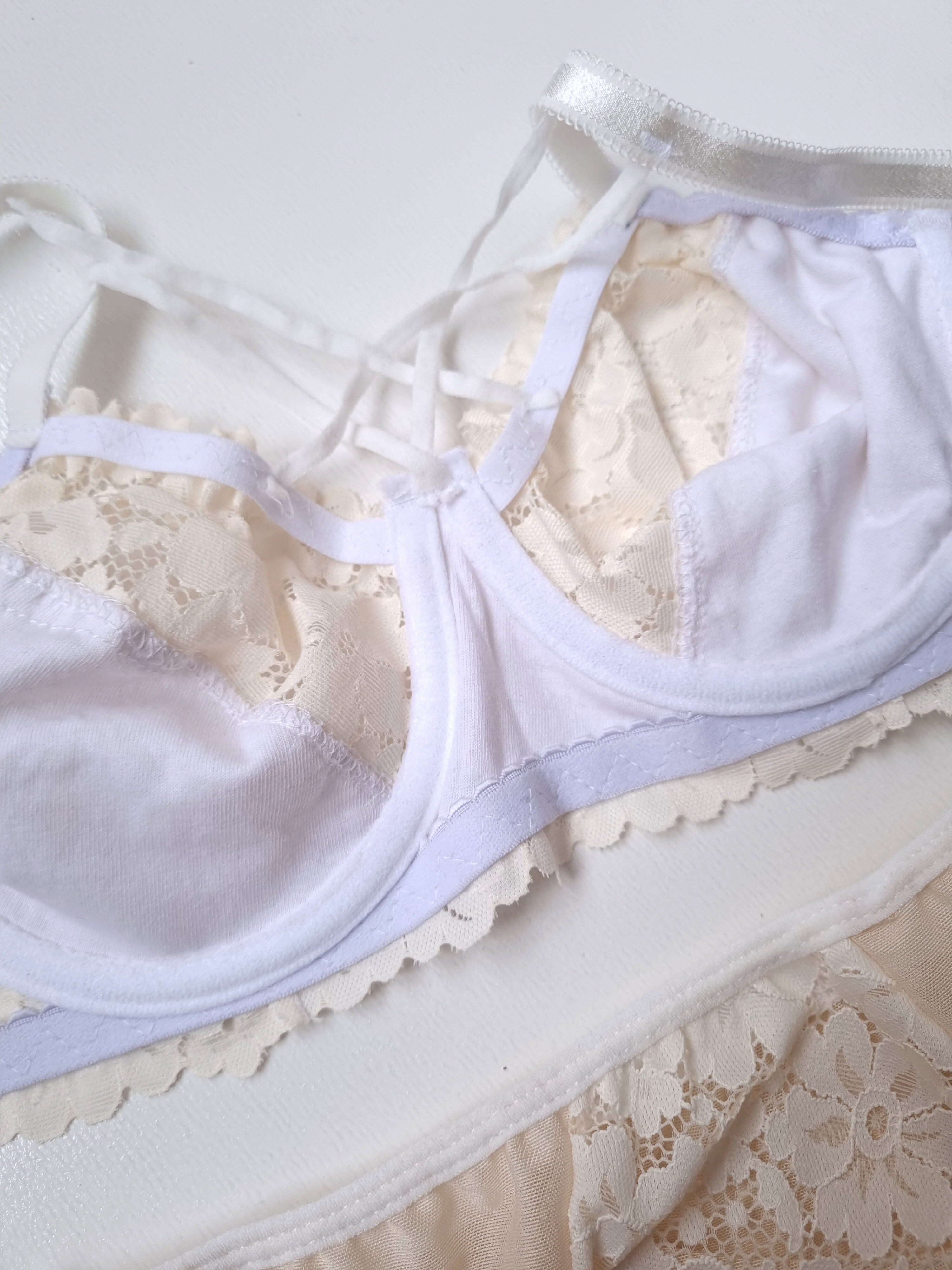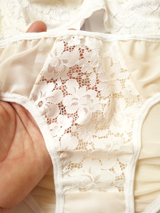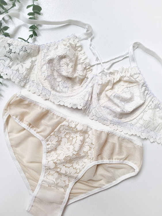 ست شورت و سوتین زنانه دانتل داخل نخی شیری رنگ